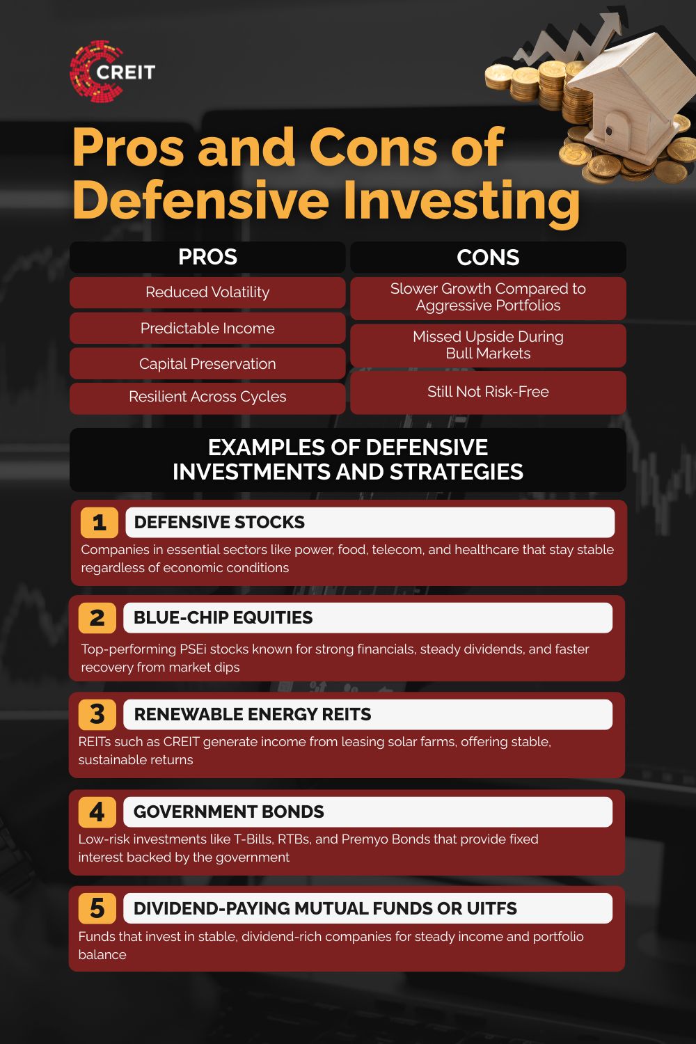 In the Philippines, defensive investing could mean investing in major utility companies, essential infrastructure, or REITs focused on power generation and distribution. These sectors tend to be crisis-resistant because they support basic needs, ensuring continued demand even when the economy slows down. While returns may be more modest, the emphasis on reliability provides peace of mind, especially for investors approaching major life goals or retirement.